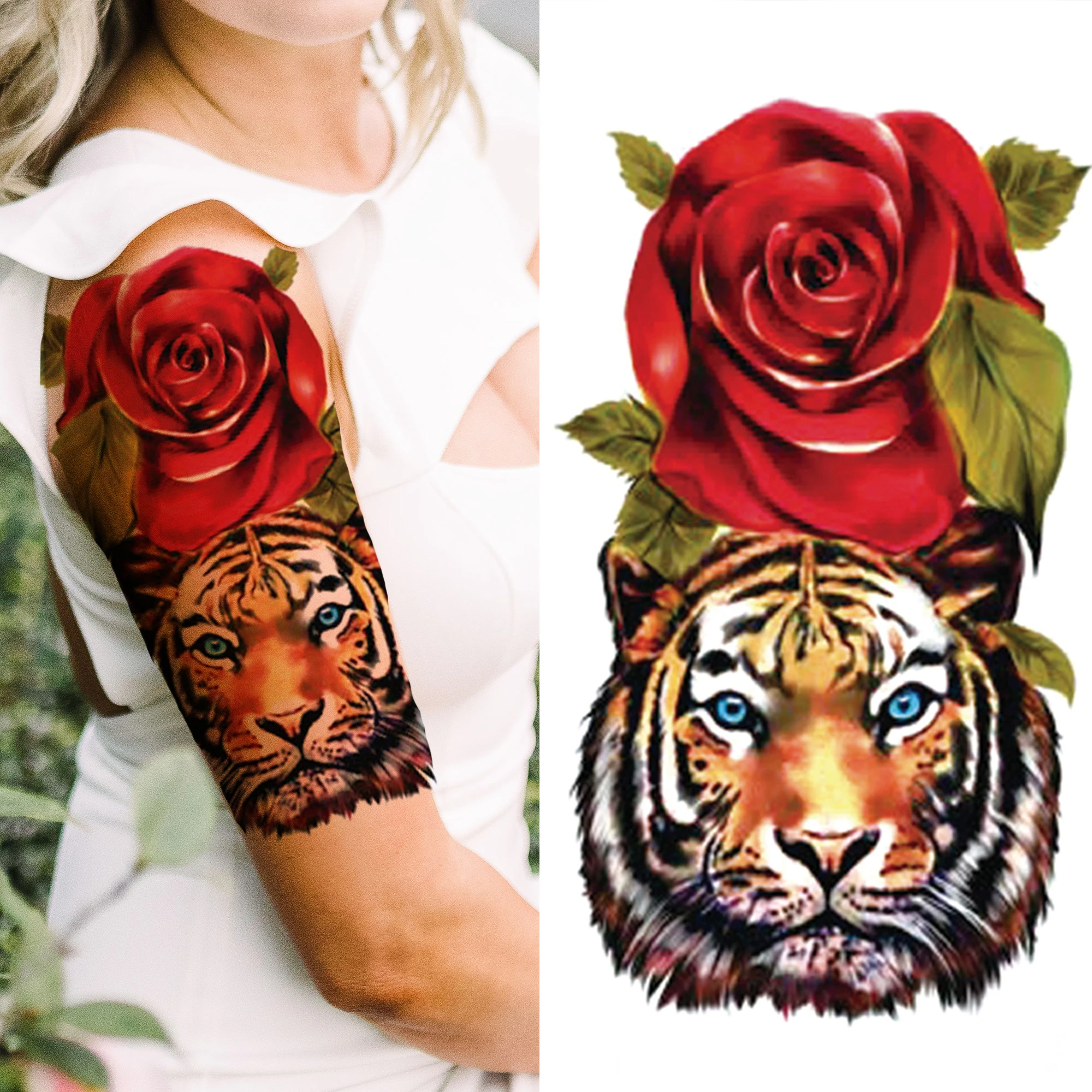 Dot Pattern Cat Carnation Flower Temporary Tattoos For Women Men Lion Tiger Rose Fake Tatoos Sticker Half Sleeve Forearm Tattoo